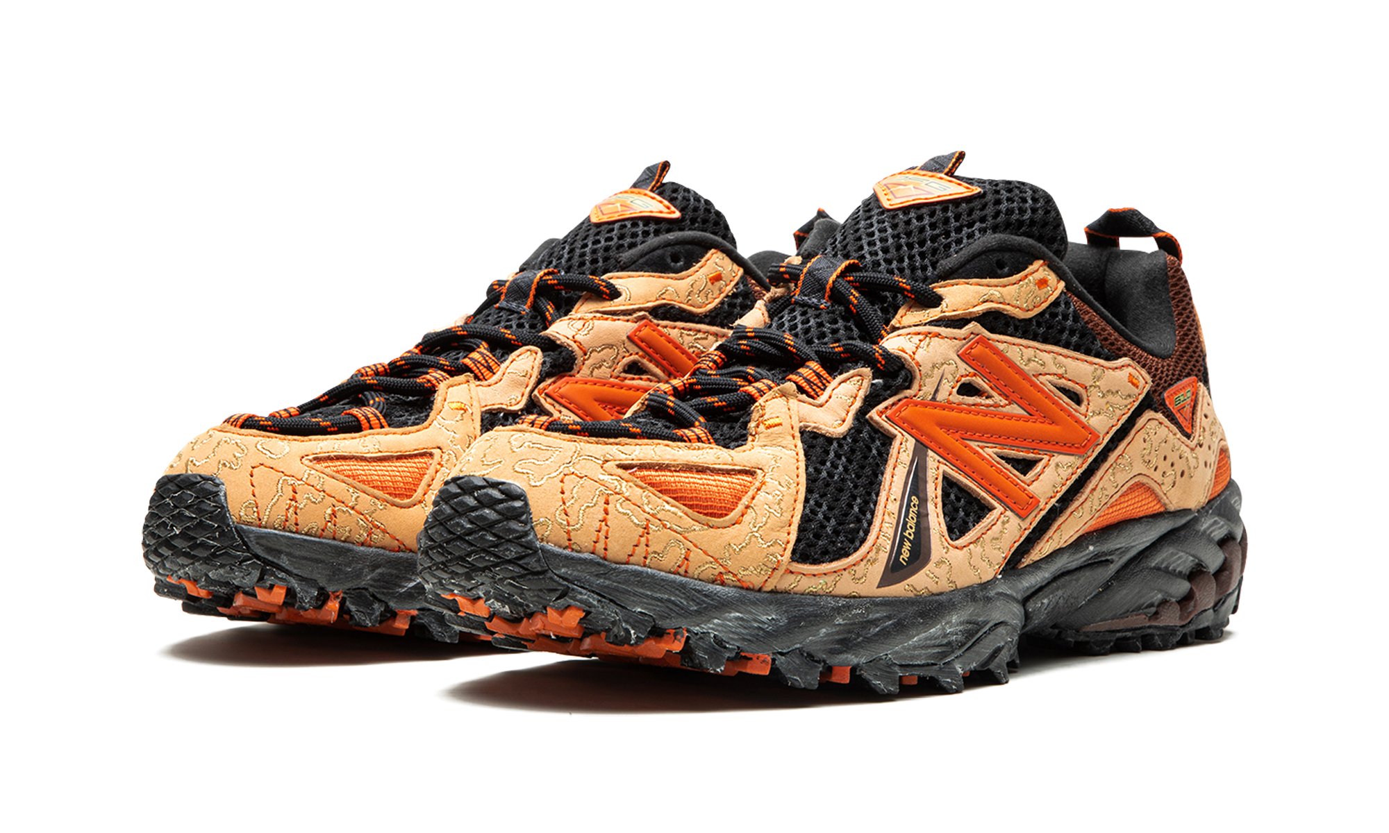Step out in style with the New Balance 610 Joe Freshgoods Latte, a unique collaboration that brings desert-inspired aesthetics to your sneaker collection. This standout shoe, also known as the Beneath the Surface Lil’ Desert, features a custom camouflage print designed by Joe Freshgoods himself, blending olive, black, and gray with striking brown and orange panels for a rugged, earthy look.