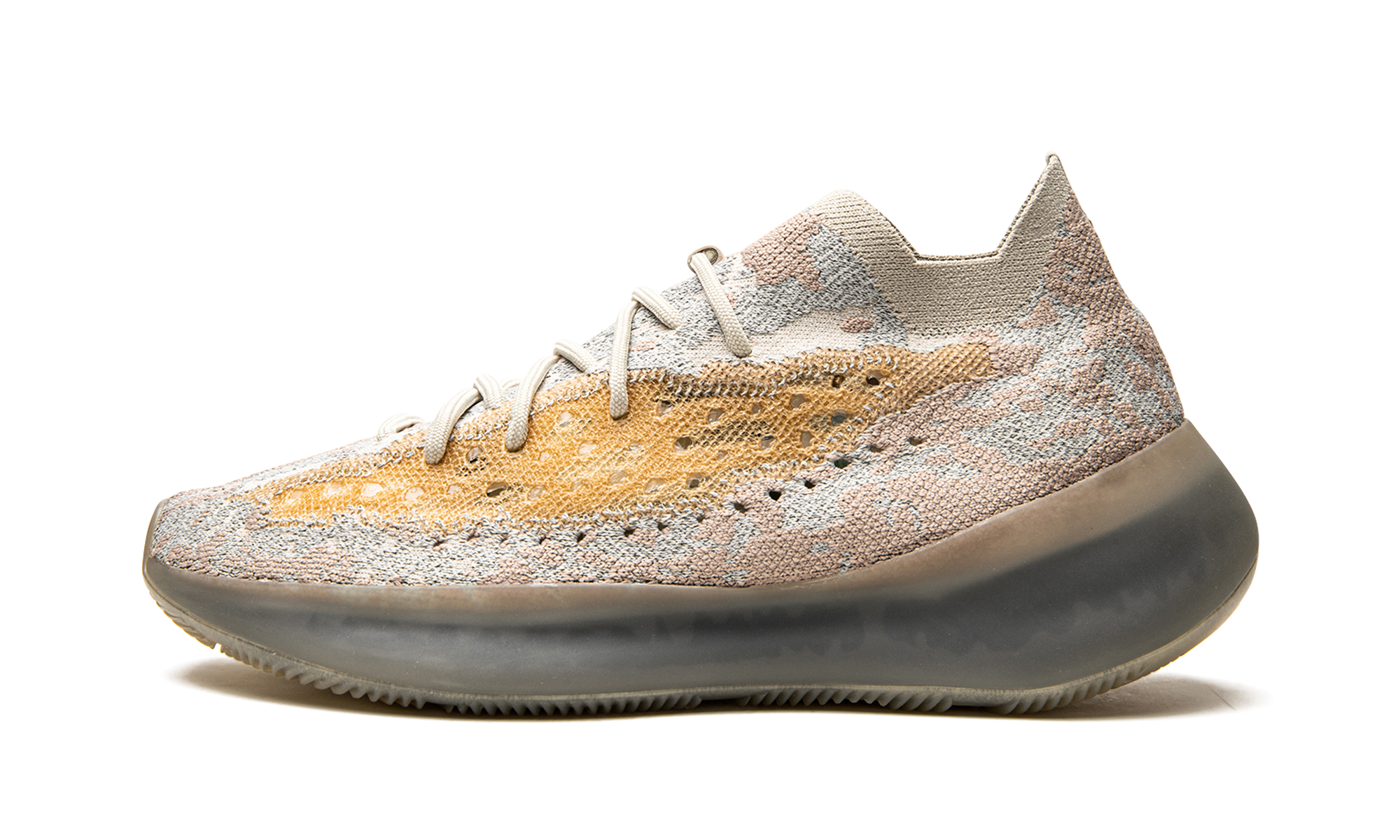 Boost technology delivers unmatched comfort with every step, while the translucent rubber outsole with herringbone pattern provides solid grip. The subtle blend of light grey and beige hues creates that understated Yeezy aesthetic we all love.