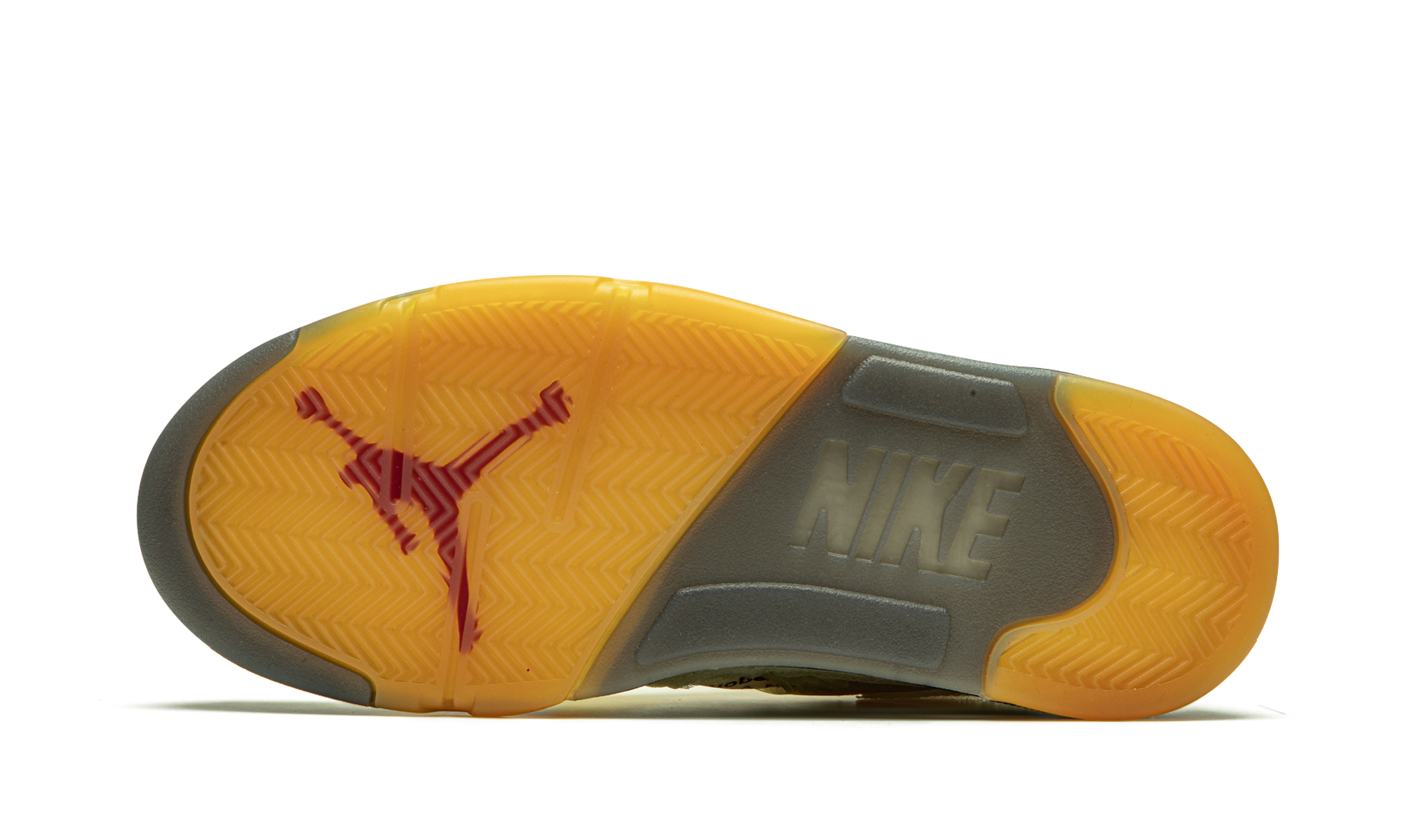 La zapatilla presenta una parte superior de malla textil Sail , con paneles de red translúcidos y exclusivas inserciones circulares con ventanas. Los plásticos envejecidos y amarillentos y los toques de rojo fuego en la marca y el icónico "23" le dan un aire vintage a la vez que moderno. Por supuesto, no serían unas Jordan 5 sin la lengüeta reflectante 3M.